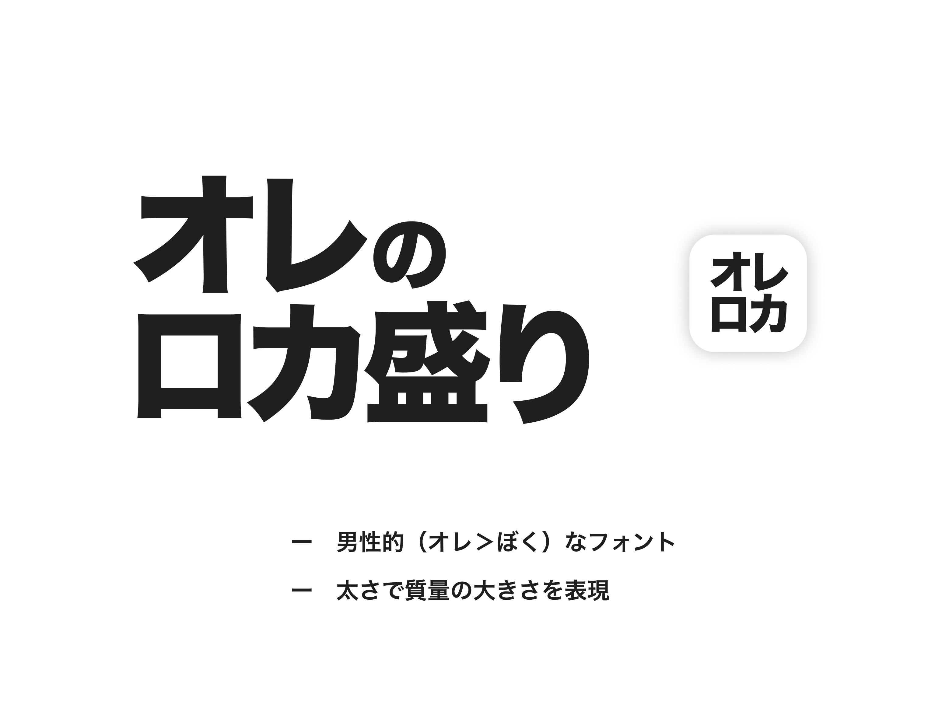痩せたいけれど大盛りのご飯を食べたい欲張りでわがままなオレを表現した。ロカボのご飯が盛りに盛られているメニューのみを扱っているデリバリーだとわかるようなサービス名にした。